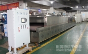 2、外形尺寸(約):長13000mm*高1800mm*寬2400mm,地面到網(wǎng)帶的高度為1000mm;進料區(qū)1000mm,升溫區(qū)長500mm,恒溫區(qū)長10000mm(分5段均可獨立控制),出料區(qū)1500mm;